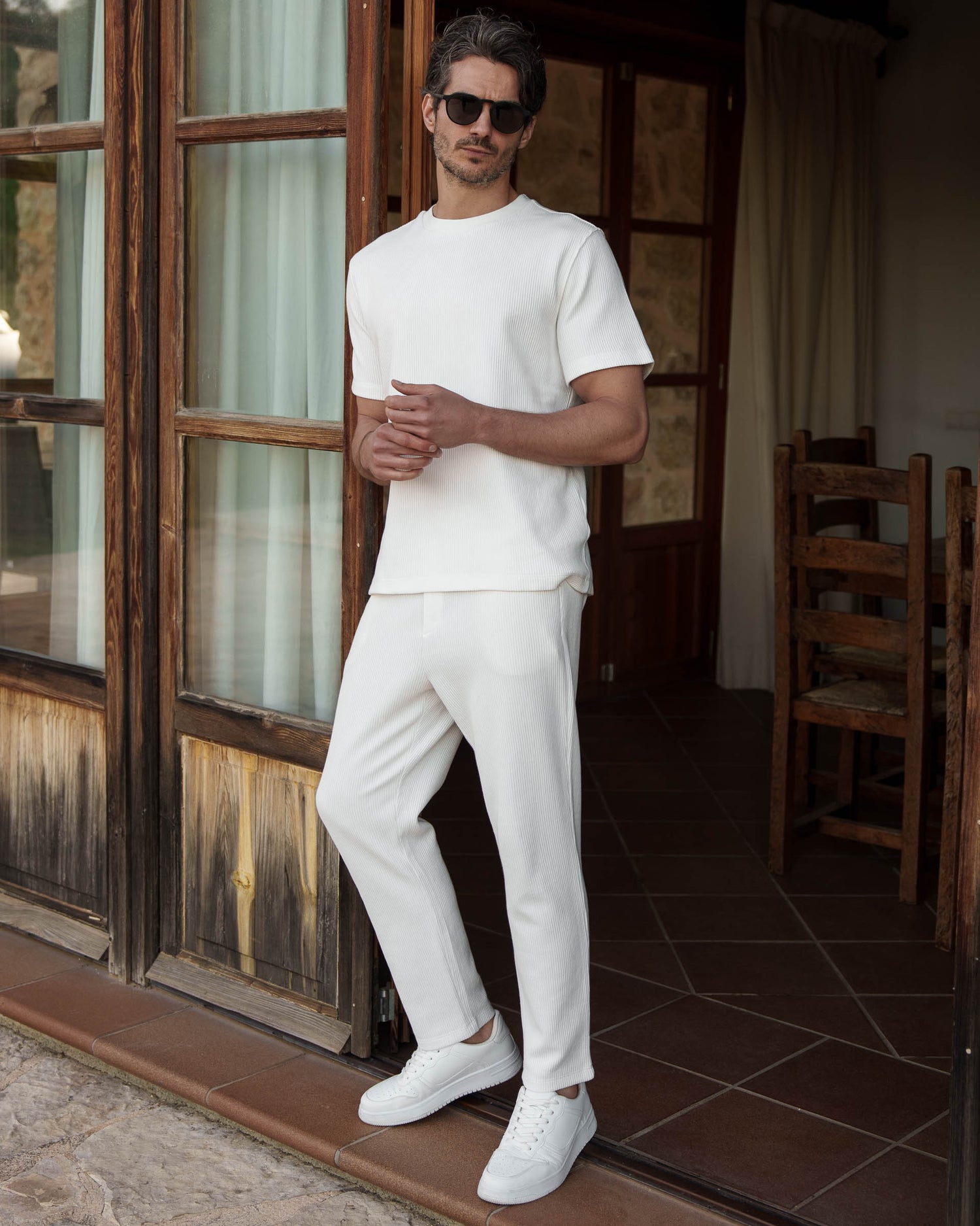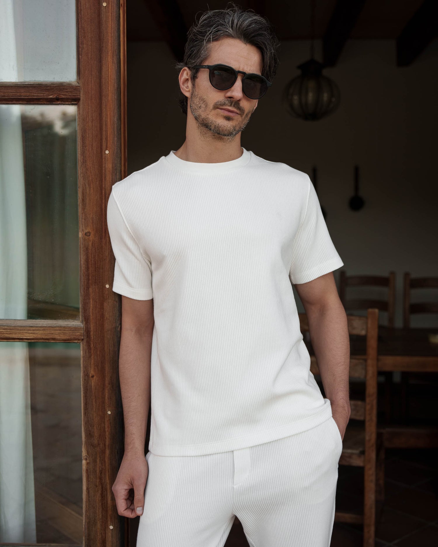 Plissee T-Shirt – Modern, stylish, and comfortable! The pleated structure gives this T-shirt a striking look and a comfortable feel. The soft, breathable material drapes smoothly and adapts to your movements. The natural elasticity ensures high comfort and shape retention – ideal for elegant or casual looks. , especially in the set.