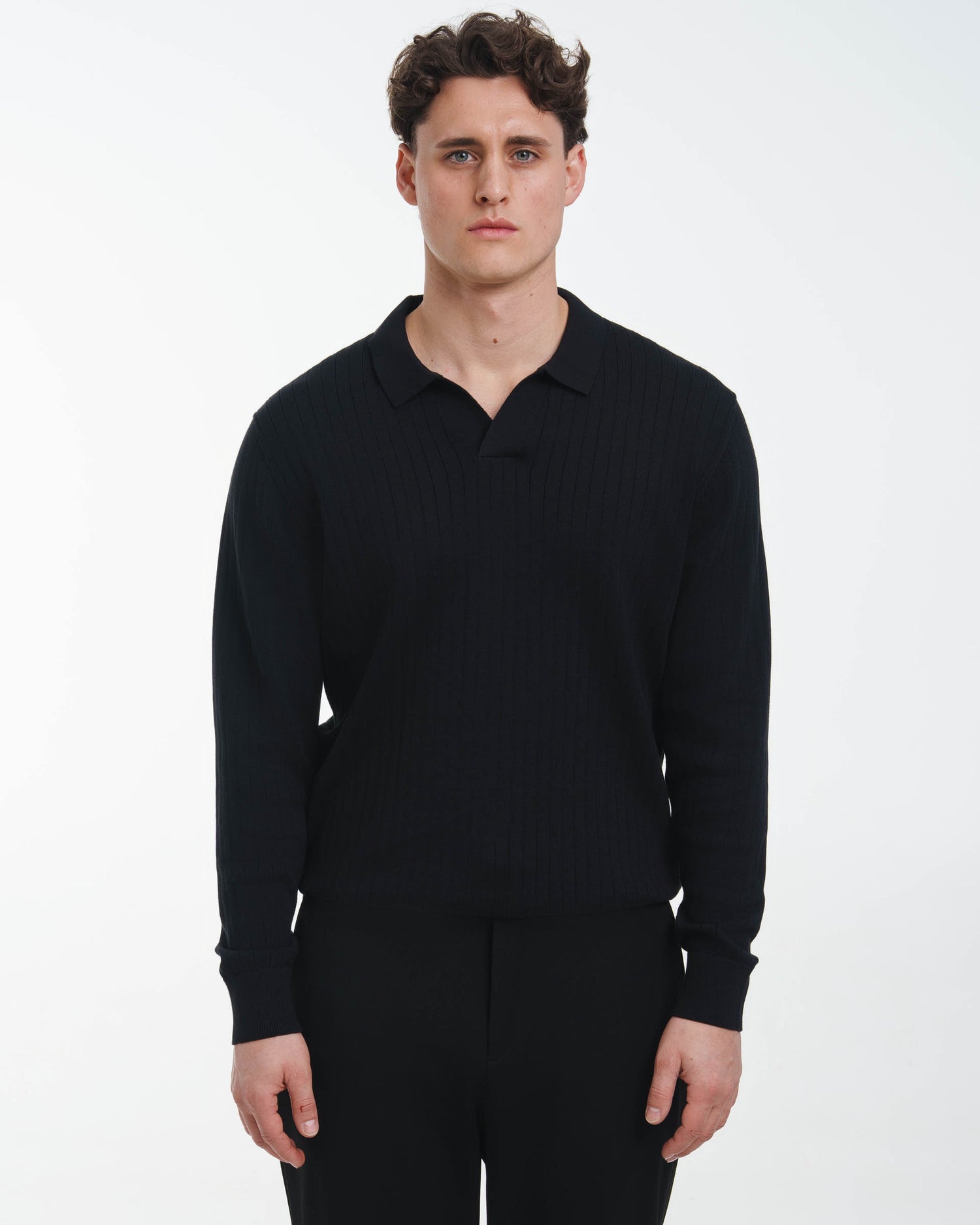 Wide Rib Knit Polo (Black)