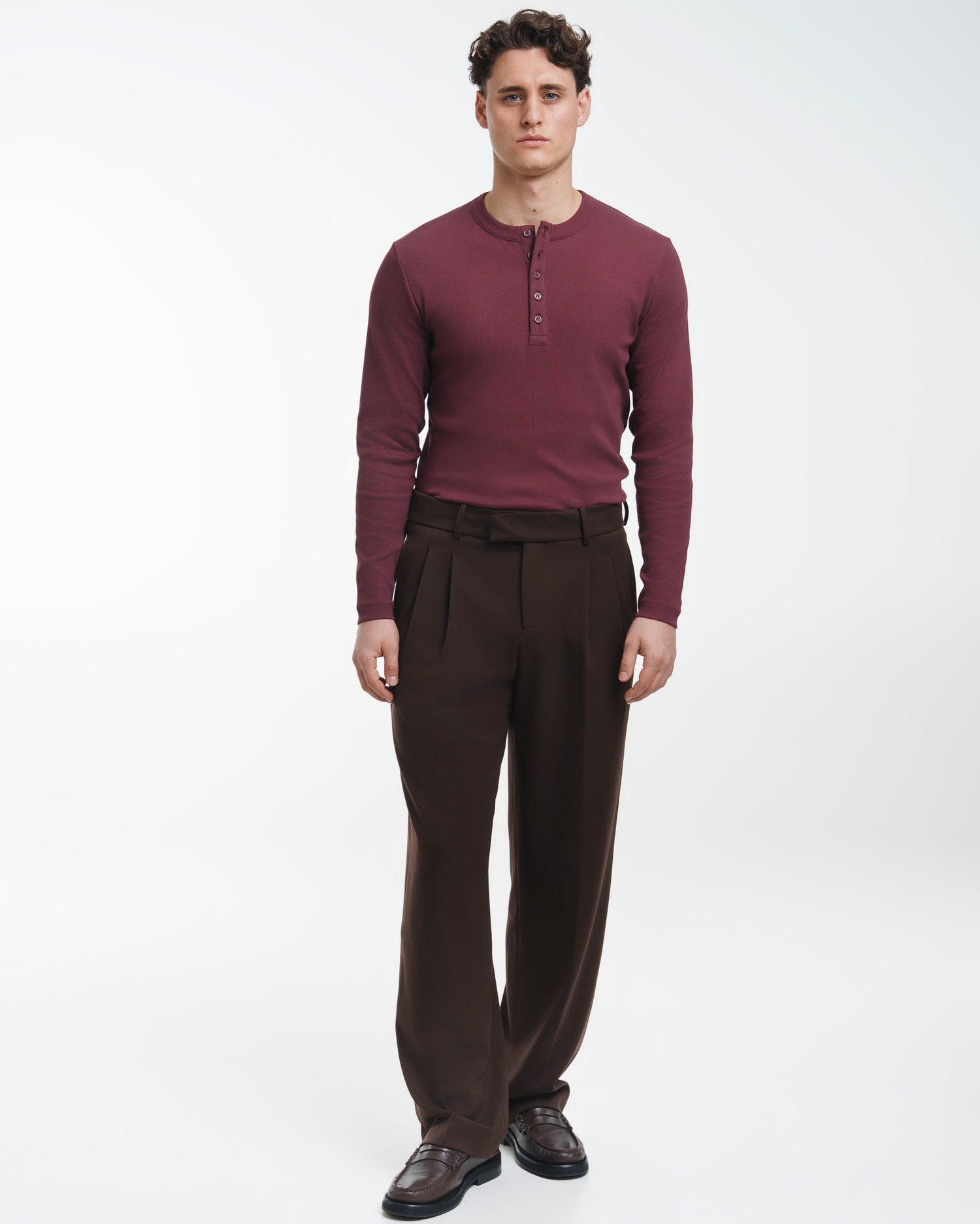 Fine Rib Henley Longsleeve (Bordeaux)