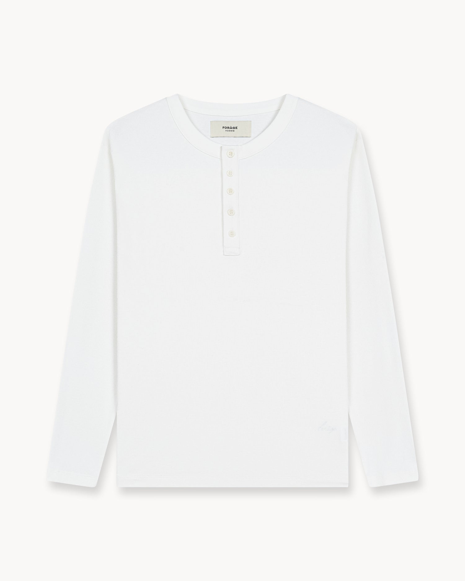 - Kragen: Klassischer Henley-Ausschnitt mit stabiler Einfassung