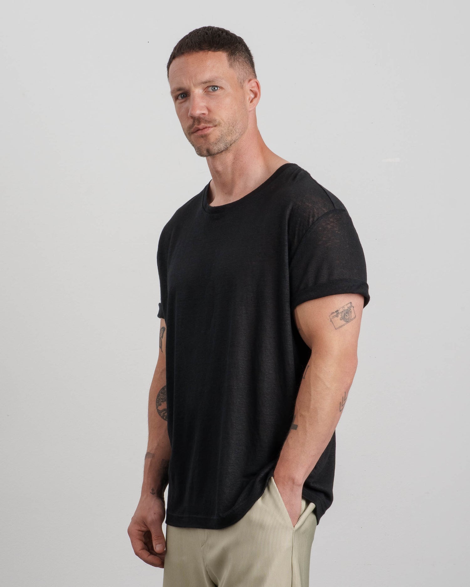 Unser Leinen T-Shirt bietet einen etwas weiteren Schnitt, um sicherzustellen, dass es auch nach dem ersten Waschen perfekt sitzt, da der Leinenstoff dort leicht einlaufen kann