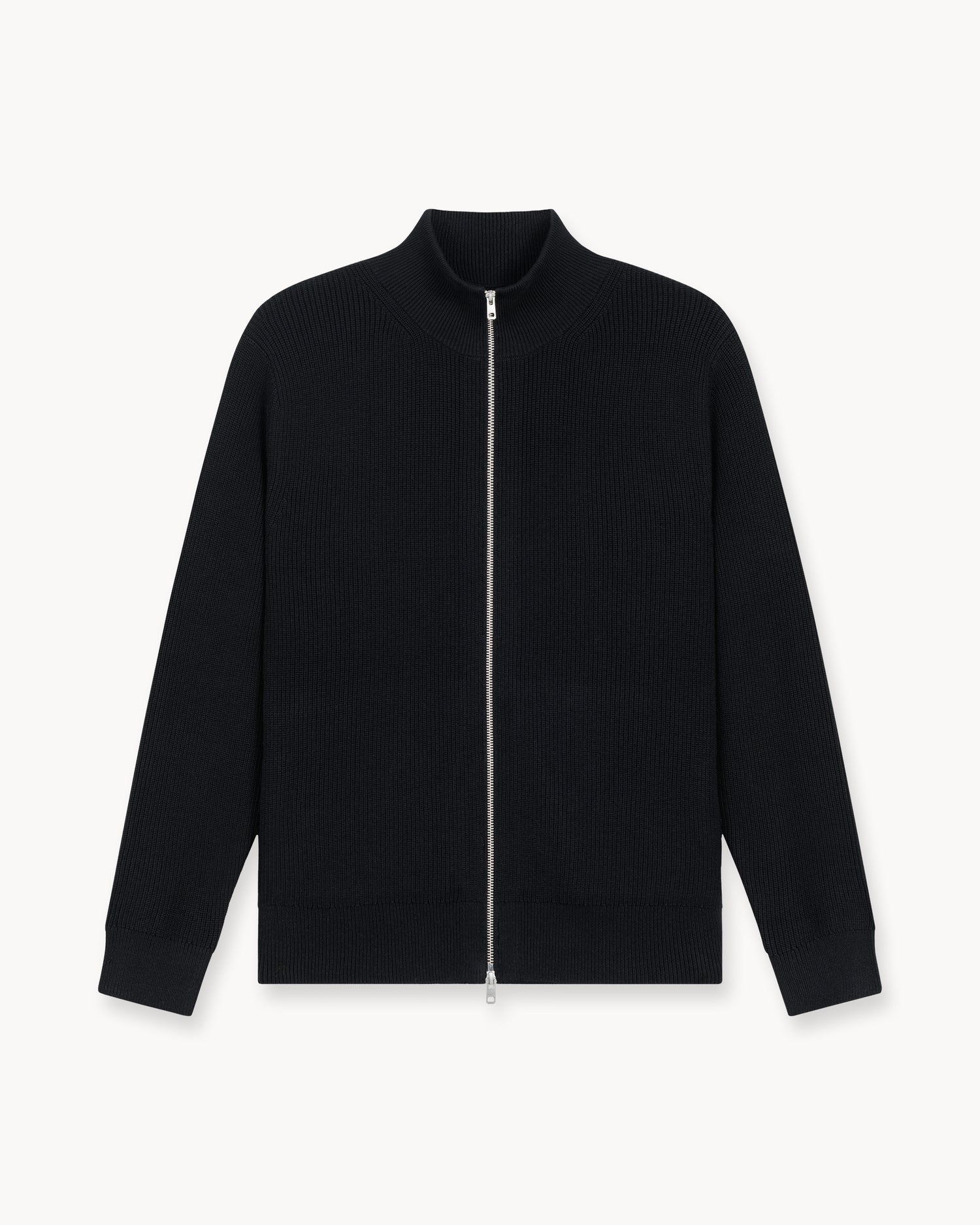 Rib Knit Cardigan – der perfekte Alltagspullover. Der mittelschwere Rippstrick sorgt für eine interessante Textur und gewährleistet gute Formstabilität. Die Materialzusammensetzung sorgt für einen luxuriös weichen Griff und hohen Tragekomfort. Mit dem hohen Kragen und dem praktischen Zwei-Wege-Reißverschluss ist er das ideale Layering-Piece für Business-Looks und den stilvollen Alltag.