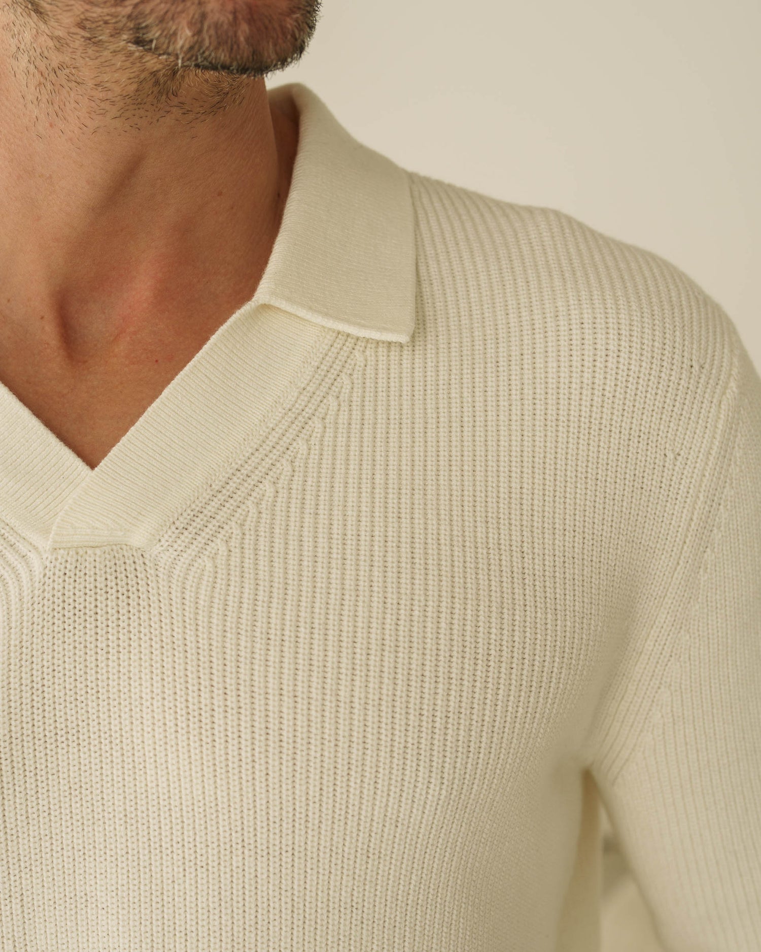Rib Knit Polo – der perfekte Alltagspullover. Der mittelschwere Rippstrick sorgt für eine interessante Textur und gewährleistet gute Formstabilität. Die Materialzusammensetzung sorgt für einen luxuriös weichen Griff und hohen Tragekomfort. Der offene Polokragen ohne Knopfleiste schafft dabei einen modernen und lässigen Look. Ein zeitloses Basic – perfekt für Büro und Freizeit.