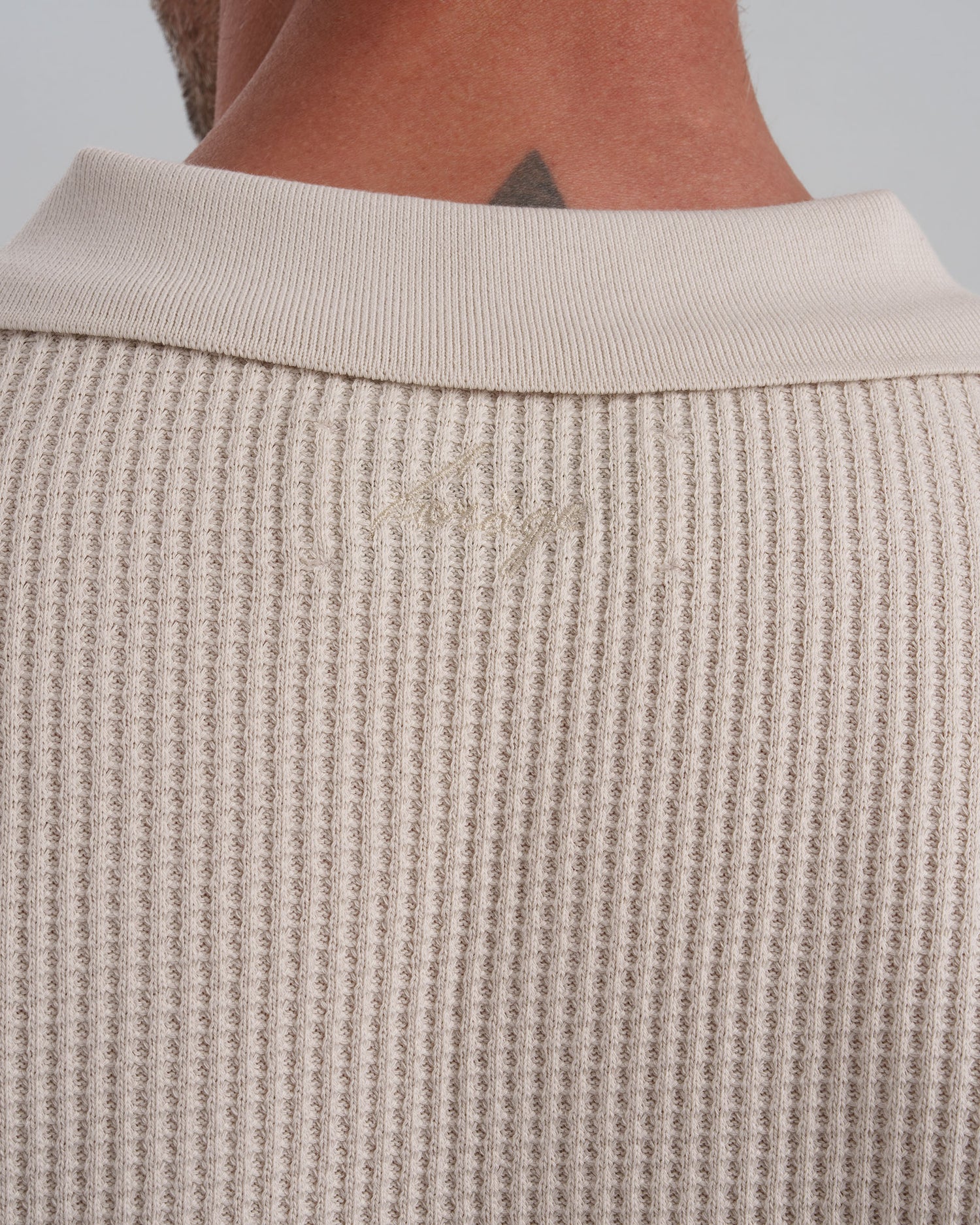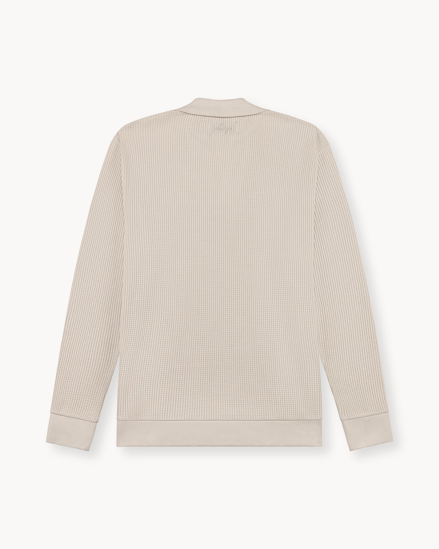 Waffle Polo Longsleeve – Der perfekte Hingucker für den Übergang! Dieses Langarm-Polo vereint lässigen Komfort mit modernem Look. Der strukturierte Waffelstoff sorgt für Atmungsaktivität und eine aufregende Textur. Der offene Polokragen und der leichte Ausschnitt runden das Design ab. Rippenbündchen an Ärmeln, Saum und Kragen bieten eine perfekte Passform - Ein echtes Highlight für deinen Alltagslook.