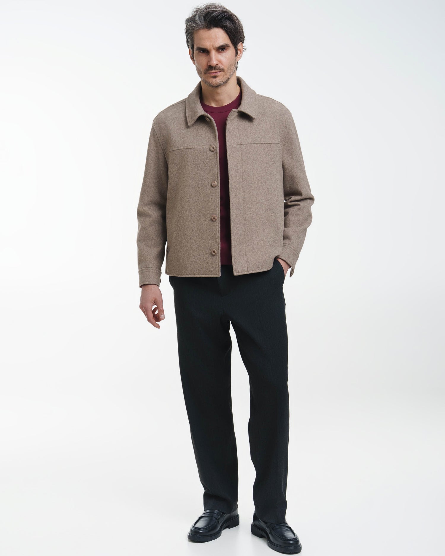 Wool Overshirt – Dein Key-Piece für den Übergang. Dieses Overshirt ist eine stilvolle Wahl für den Alltag. Der feste Wollmix bringt eine sehr wertige Struktur in dein Outfit. Du stylst es einfach über ein T-Shirt oder einen leichten Pullover. Die klare Form sorgt dabei durchgehend für einen aufgeräumten und modernen Look.